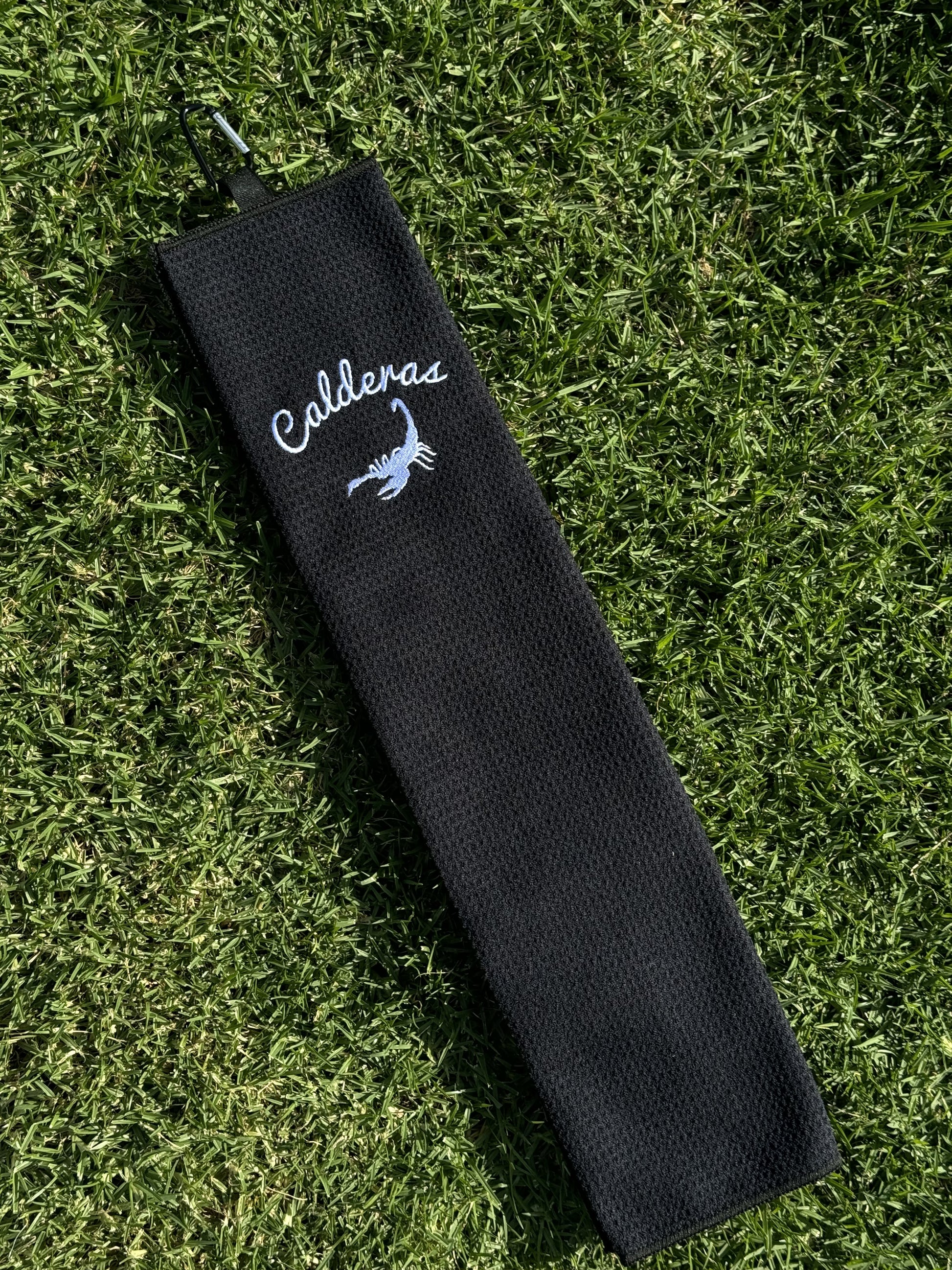 Crafted for the modern player with timeless taste. The Calderas Trifold Golf Towel combines function and refinement — featuring ultra-absorbent microfiber, sleek detailing, and our signature Calderas branding. Finished with a durable metal clip for easy access on the course, it’s designed to keep your game — and your style — clean.